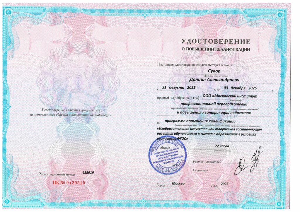 Также сегодня я получил удостоверение о повышении квалификации по ИЗО: