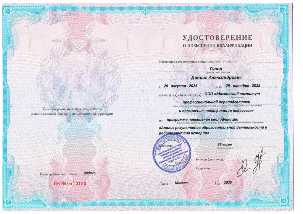 И второе за курс «Анализ результатов образовательной деятельности в работе учителя истории»: