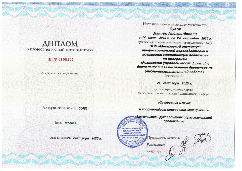 В этом году я решил, насколько это возможно, повысить свою квалификацию и получить новые компетенции, о чем я уже писал в прошлых заметках. И квалификация заместителя руководителя — это один из тех курсов, которые важны для меня. Вот такой диплом я получил:
